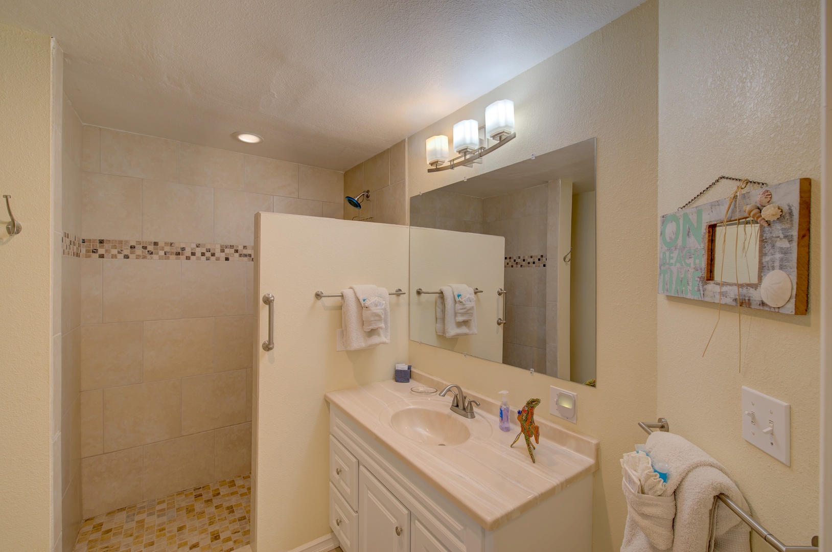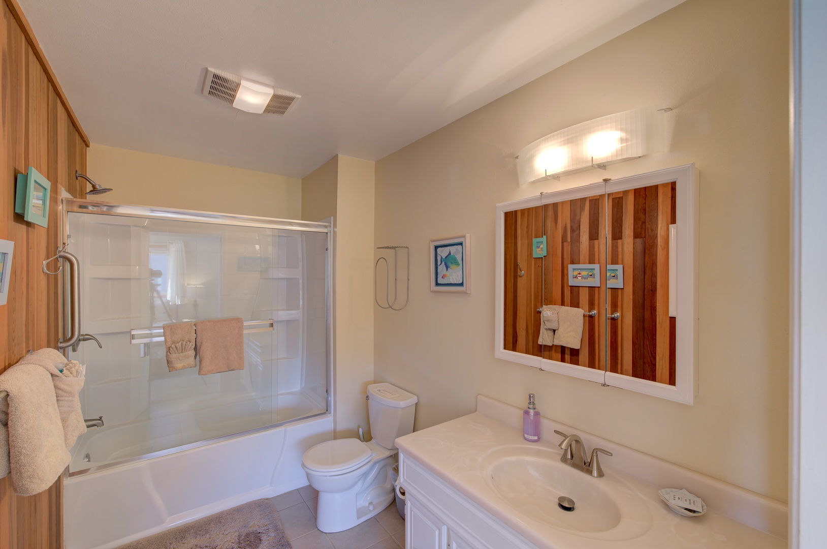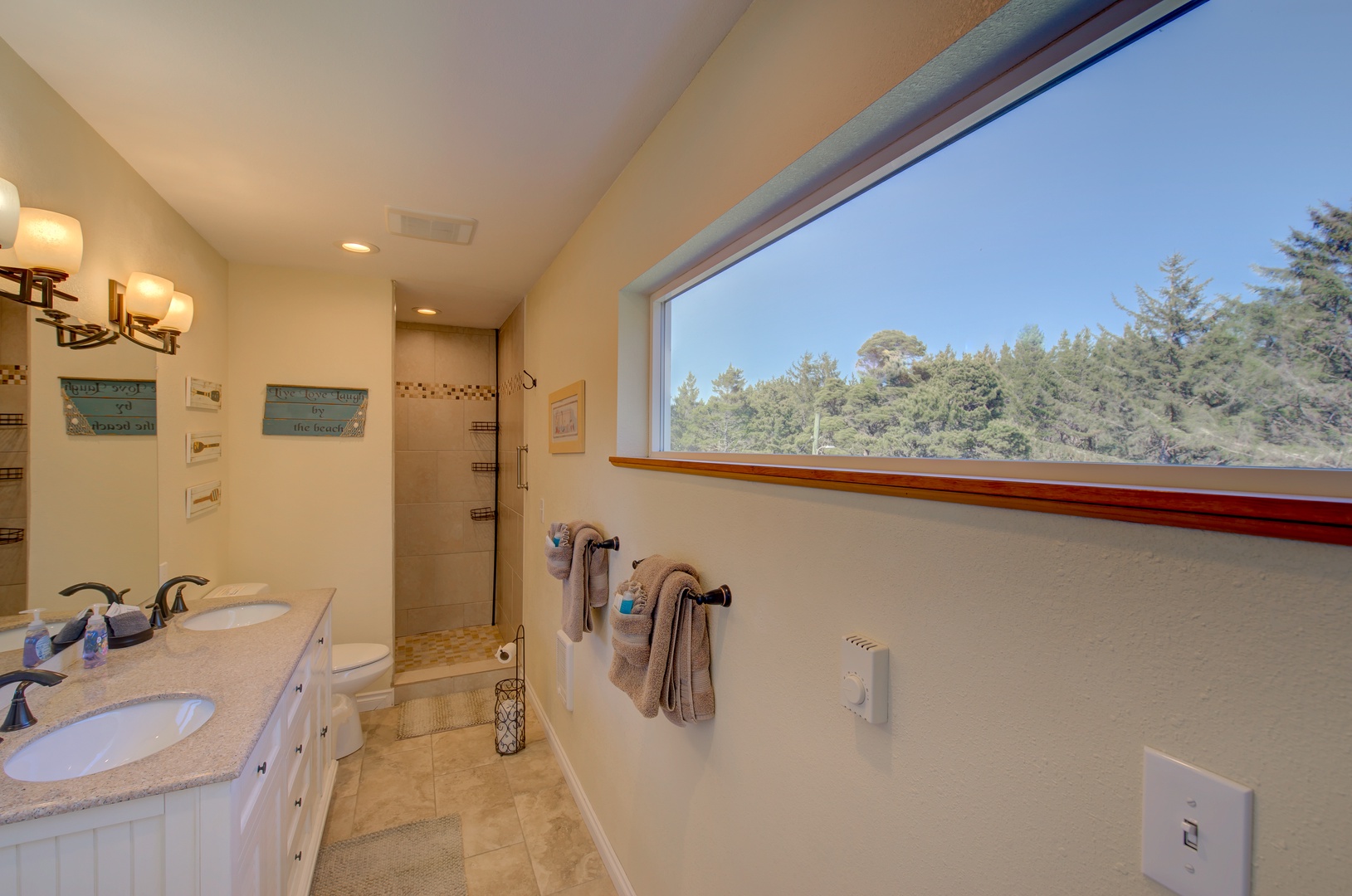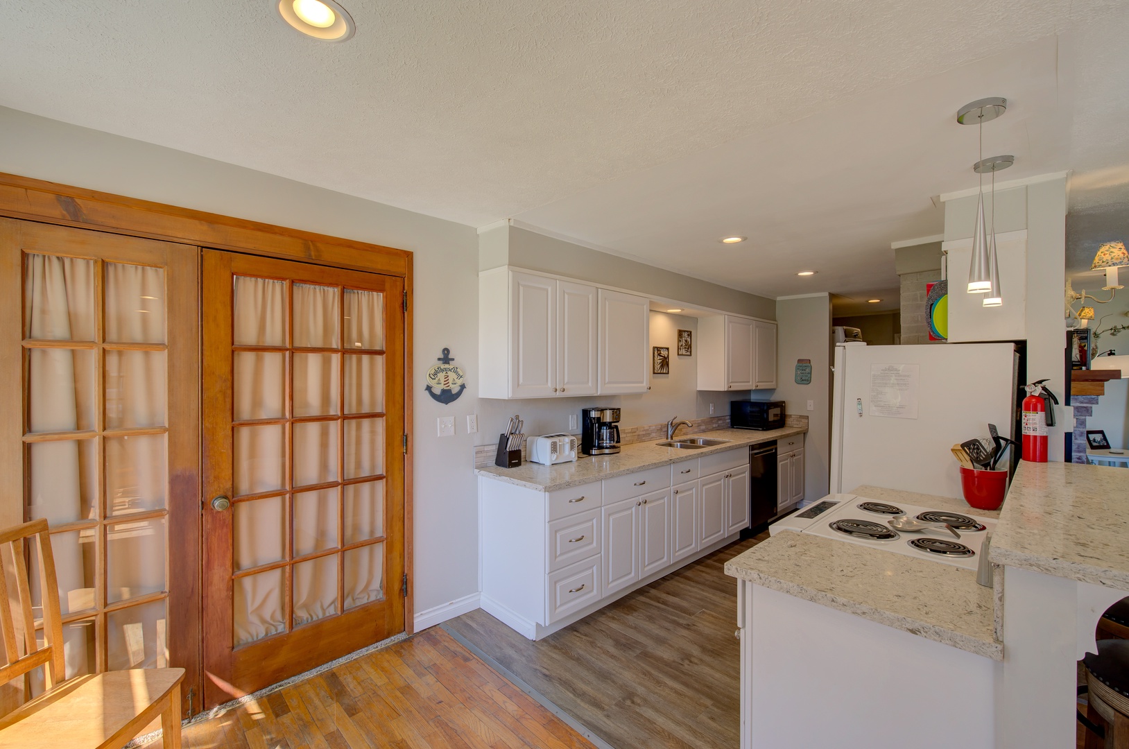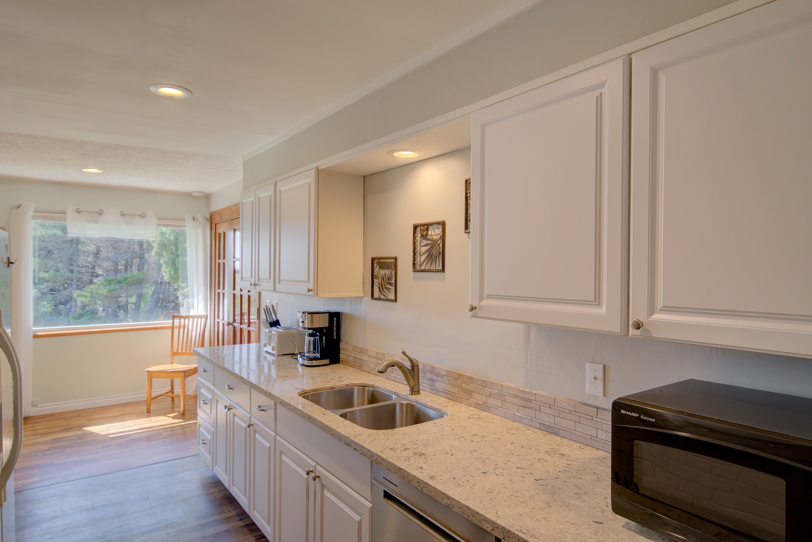 On the other side of the dining room is the kitchen -- a well-stocked galley style, with an adjacent laundry room. Beach Retreat has plenty of parking with room for 2 cars near the house and up to 3 more in the lower parking area. It truly has all the amenities you would expect in your next ocean vacation adventure.
