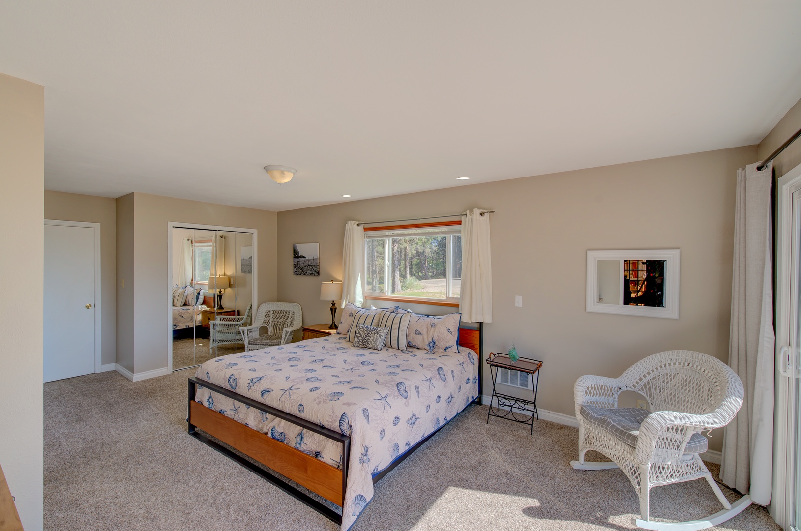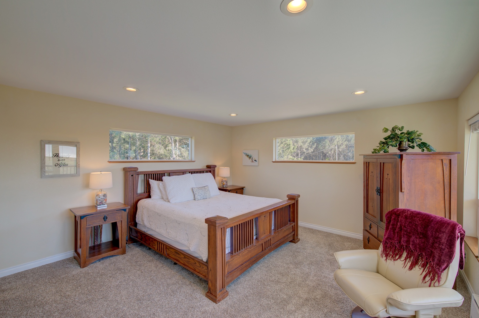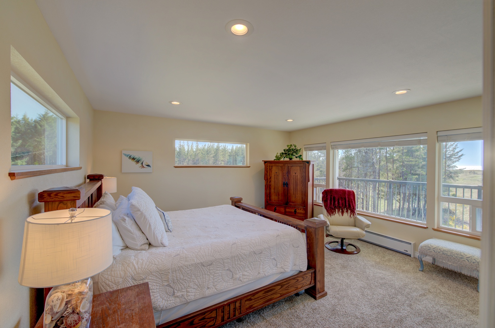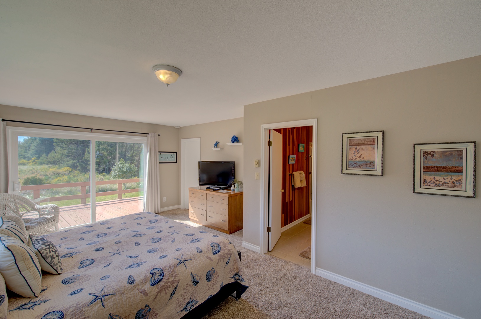 The house boasts 2 kings, 3 queen beds. Most bedrooms have their own flat screen TV's but we bet you won't need them. The property is located in a picture-perfect setting on two acres, nestled in the pine trees, close to nature, casual and relaxed, and with its own walking path to the beach. At the end of the trail, you will find an elevated bench to sit and watch the waves roll in.