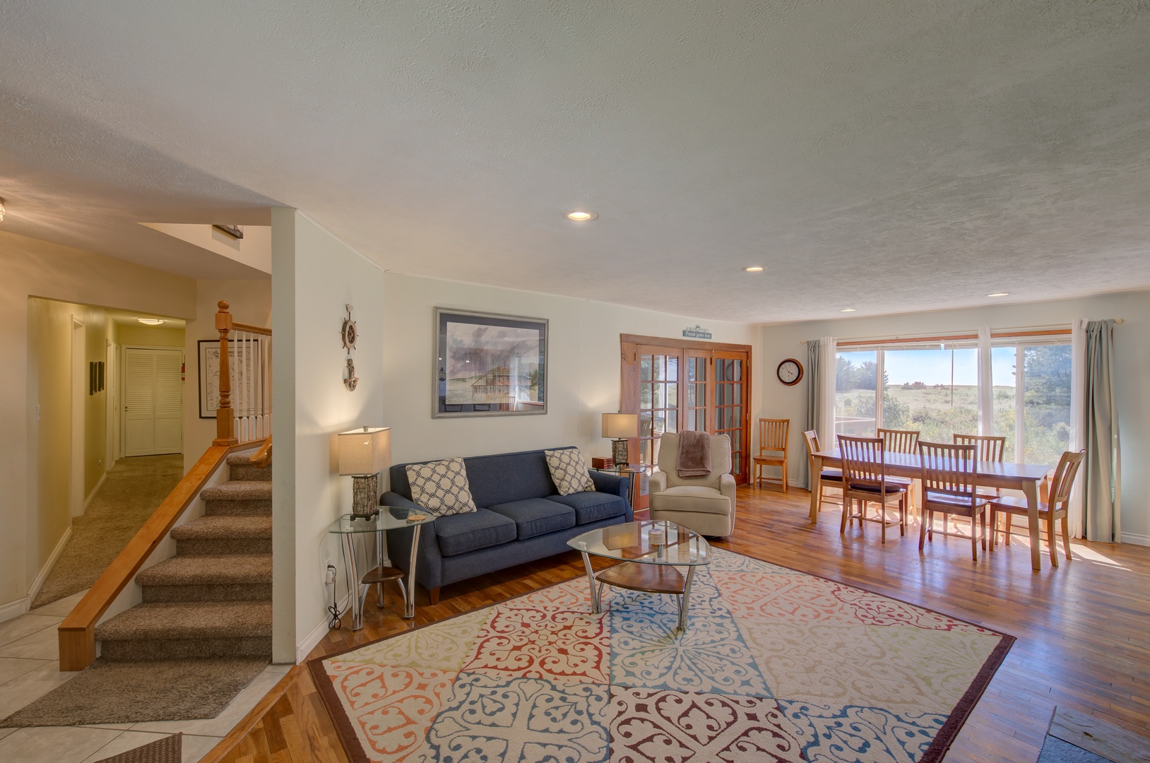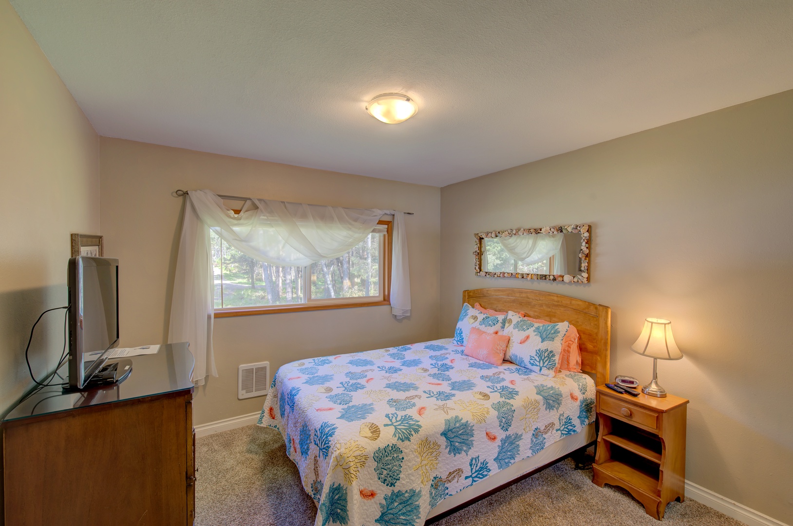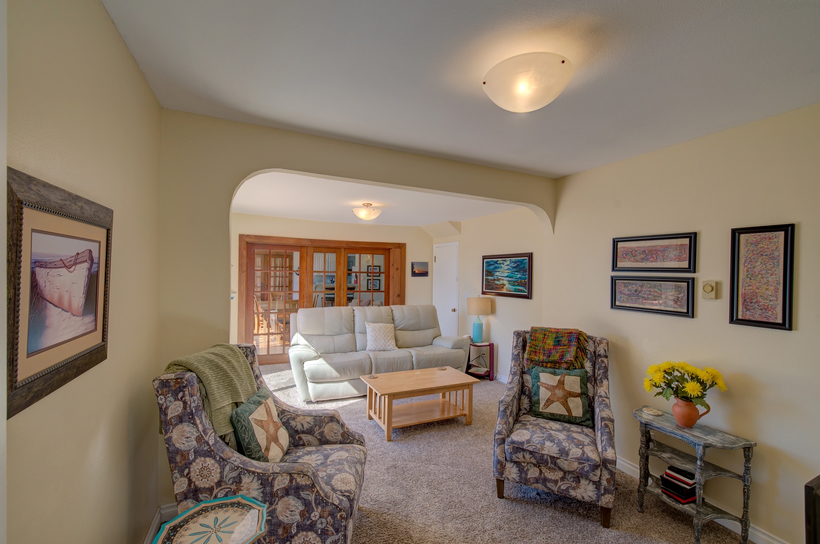 Beach Retreat has room enough for up to 10 people maximum and is pet friendly with an extra charge. The downstairs master bedroom has a king bed, master bath and its own sliding glass door out to the large lower deck. There are two more full baths to service the remaining three downstairs bedrooms. All the bedrooms have been remodeled for a luxurious feel. The living room/dining room offers hardwood floors and an open floor plan with a wood burning fireplace [GUESTS PROVIDE THEIR OWN FIREWOOD].