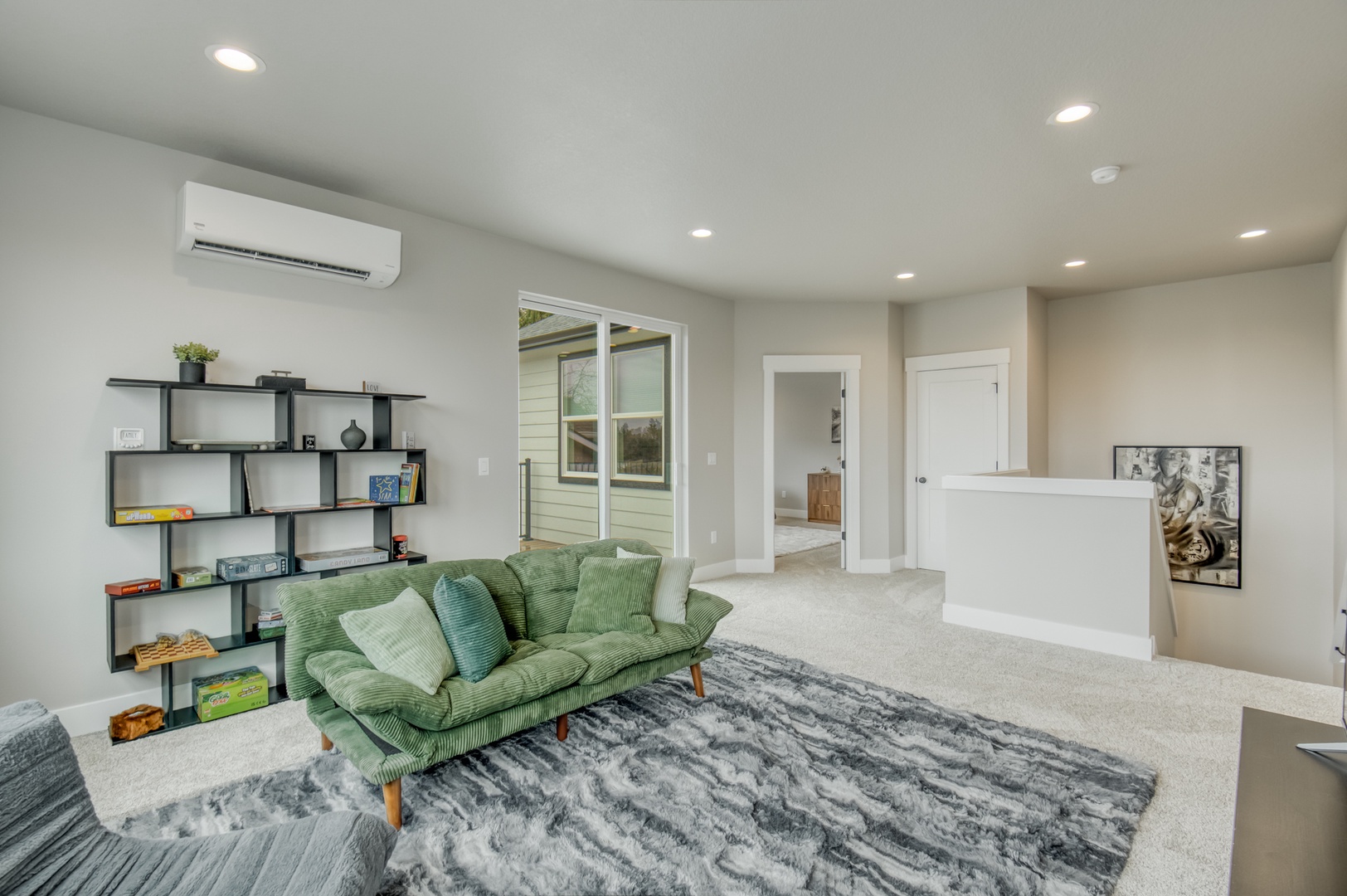 Upstairs living room with smart TV. Lots of toys, books, and games for the little ones. The couch/futon flattens for a 7th sleeping spot if needed.