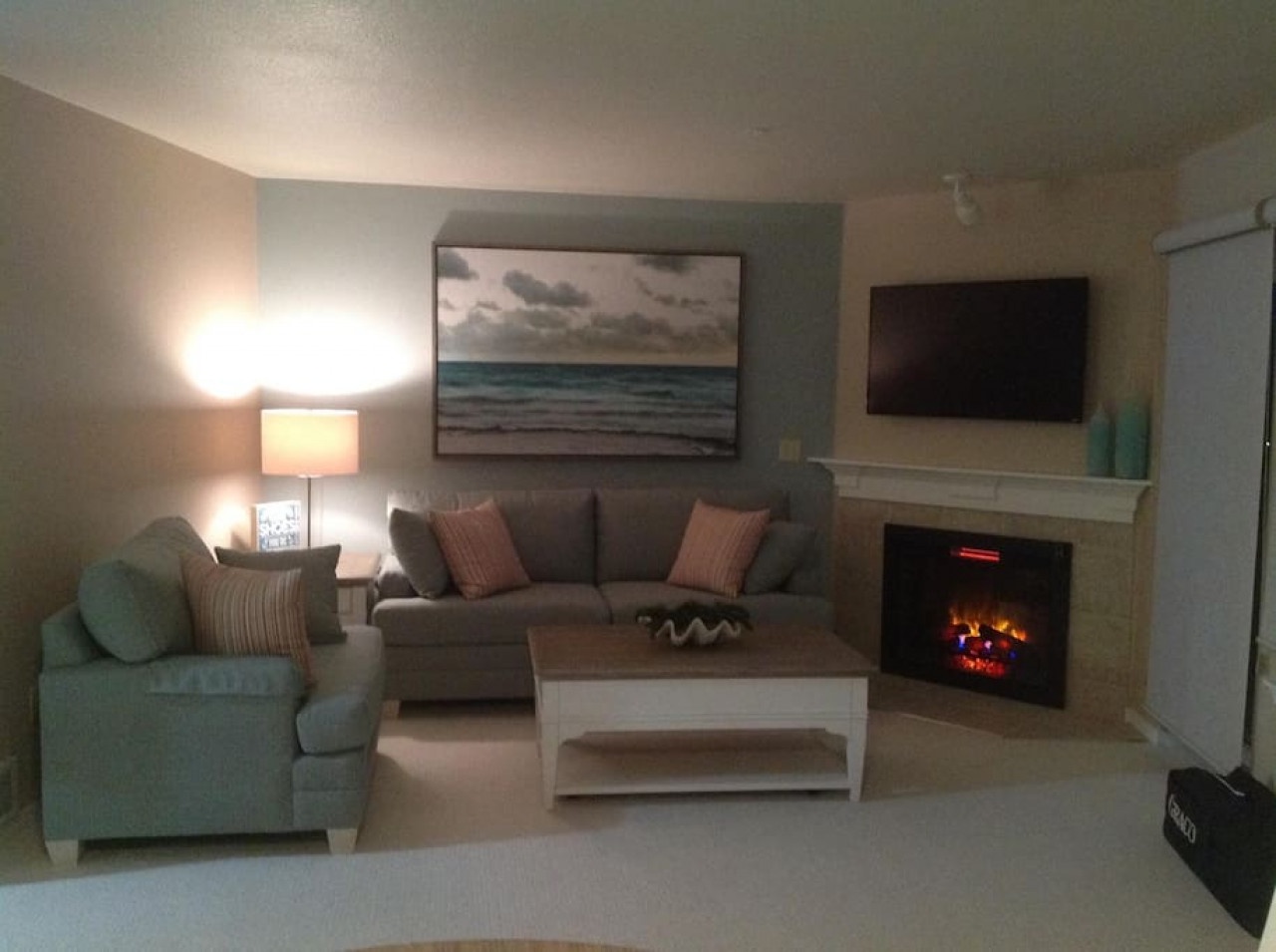 However, with the beach just a few feet away, it's hard to resist the call of the ocean. Tranquil and transcending are words that may come to mind as you step outside and immerse yourself in the natural splendor of the surroundings. And when the day winds down, you can cozy up to the electric fireplace, creating the perfect ambiance for relaxation and tranquility.